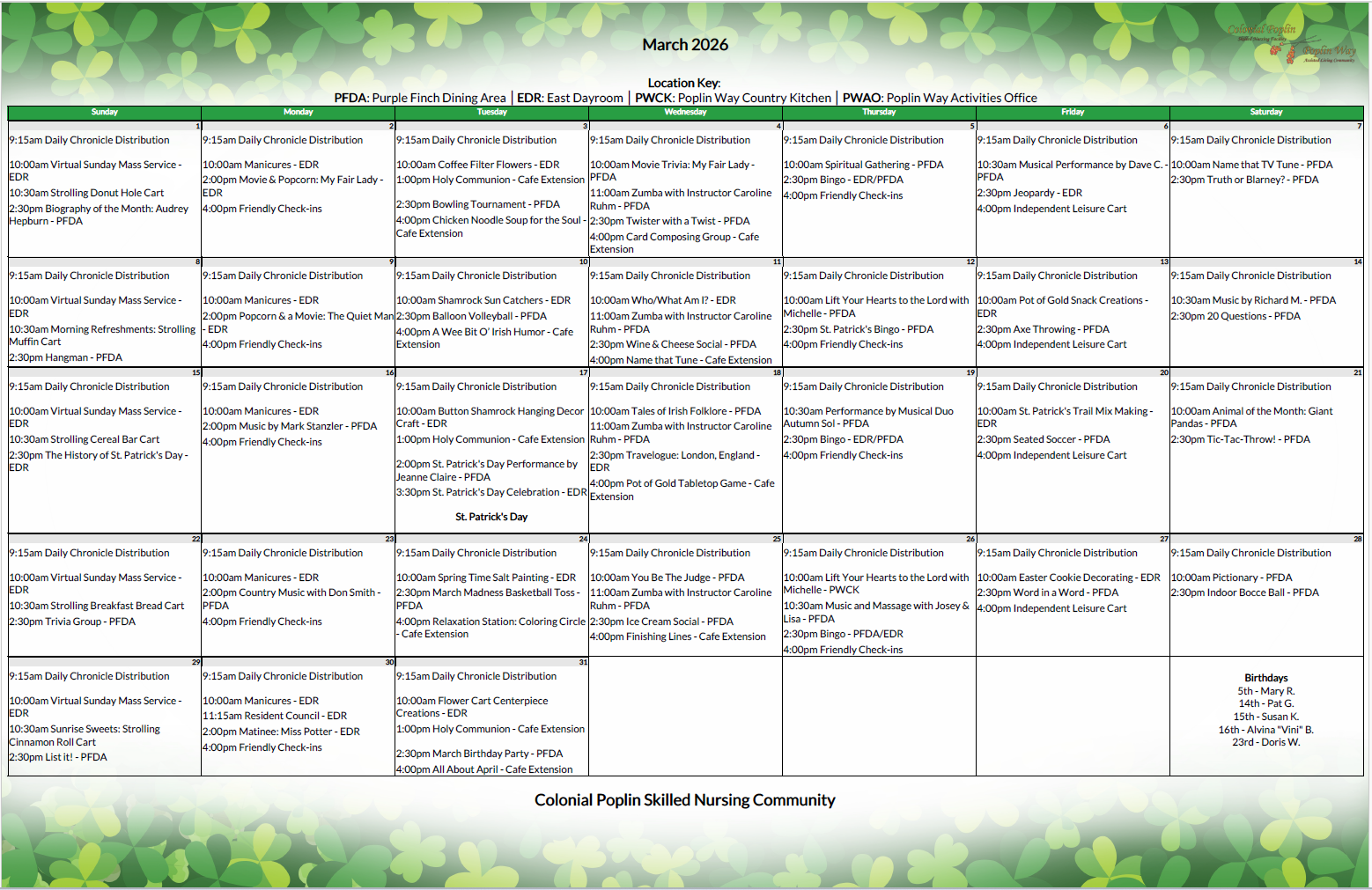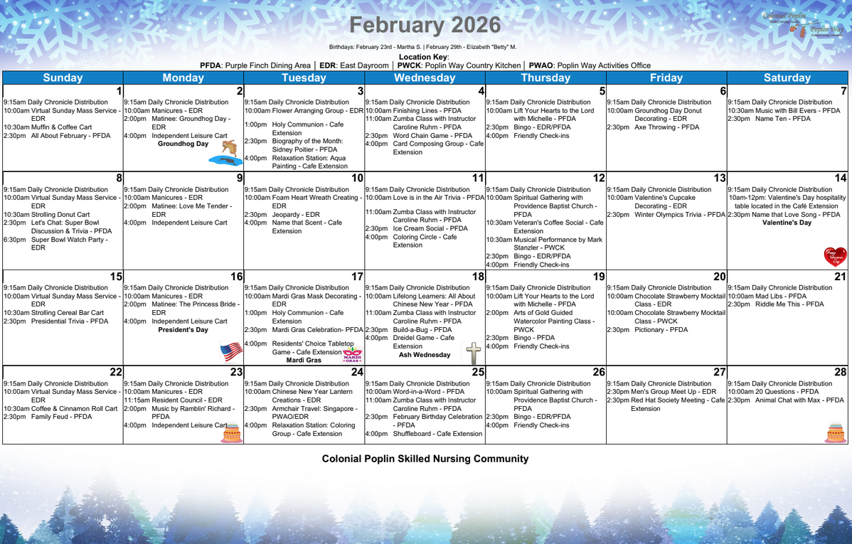 Calendars Check out our monthly schedules to see all the activities that keep our community busy and having fun!
